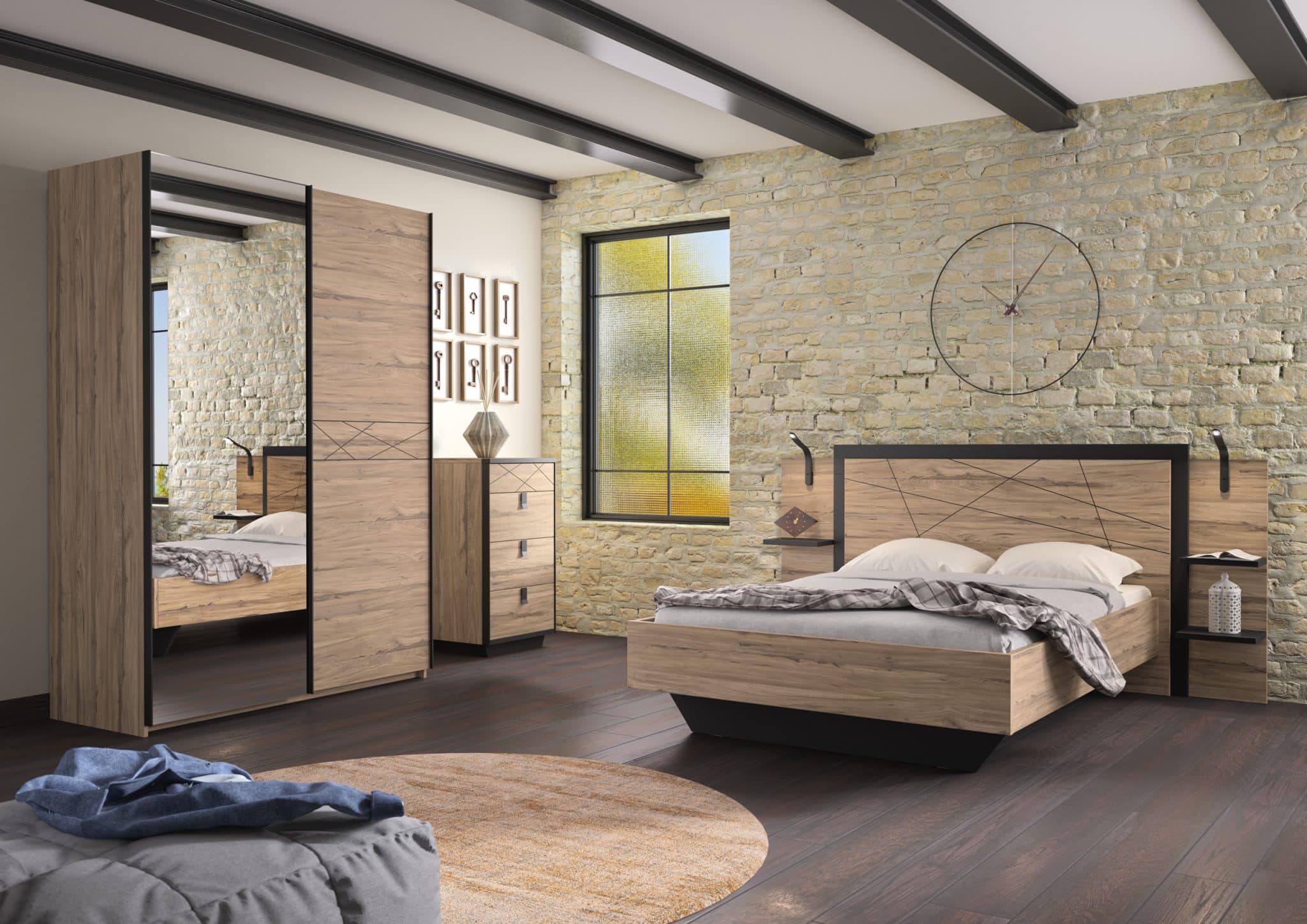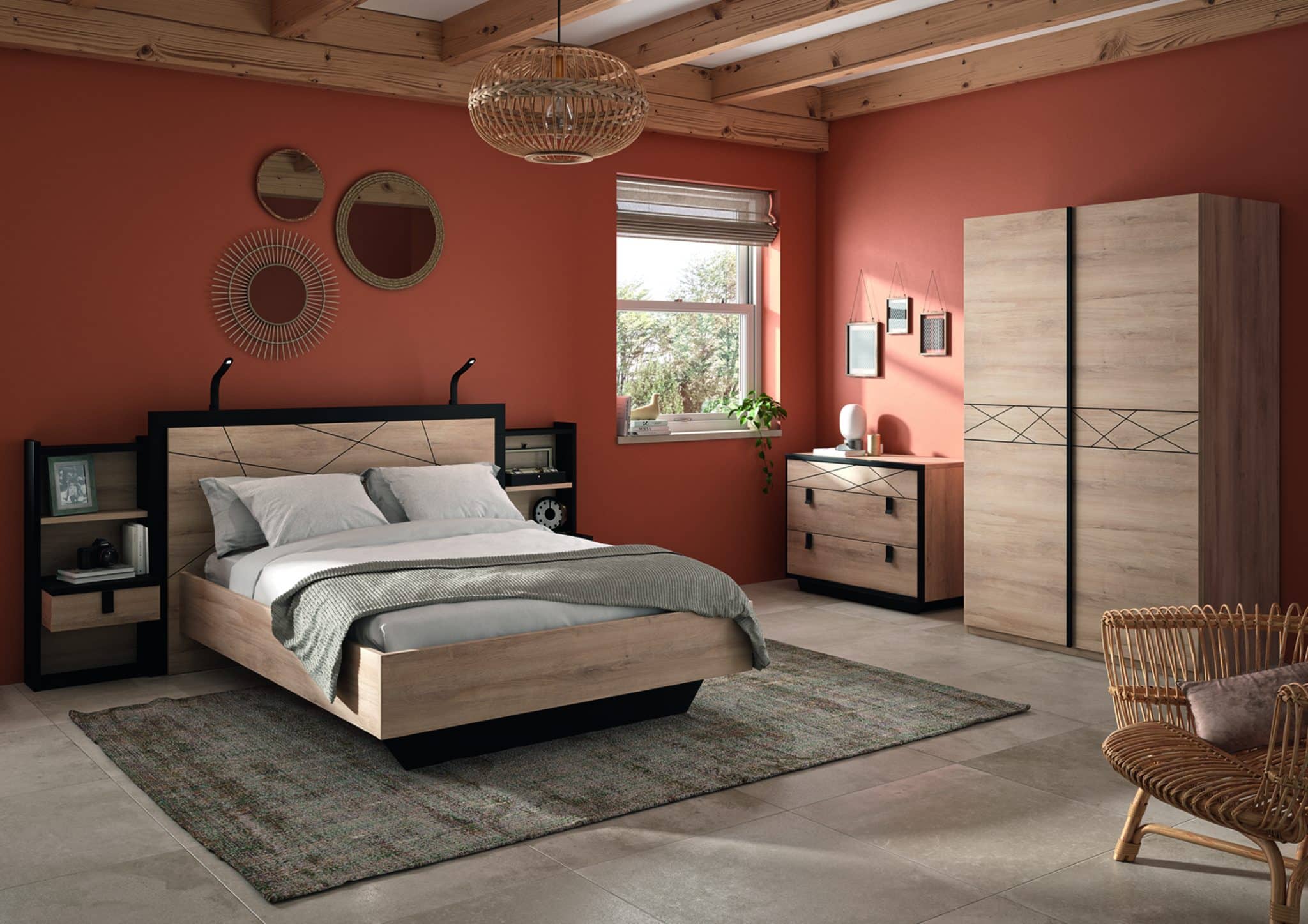 Teinte au choix : OLMO-SABI ou CHENE AURORA - Décor : noir mat