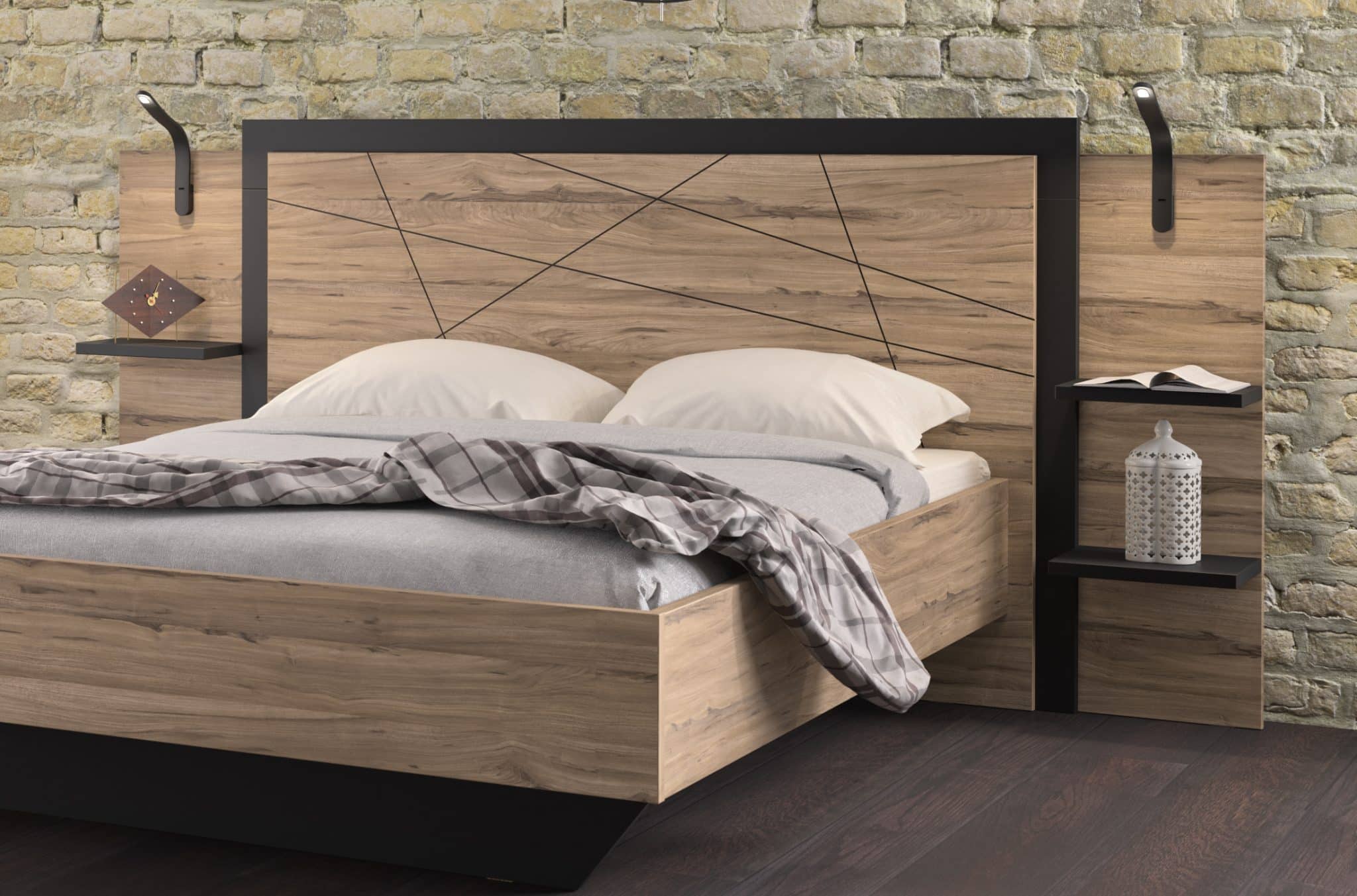 Tête de lit avec 2 blocs étagères en option