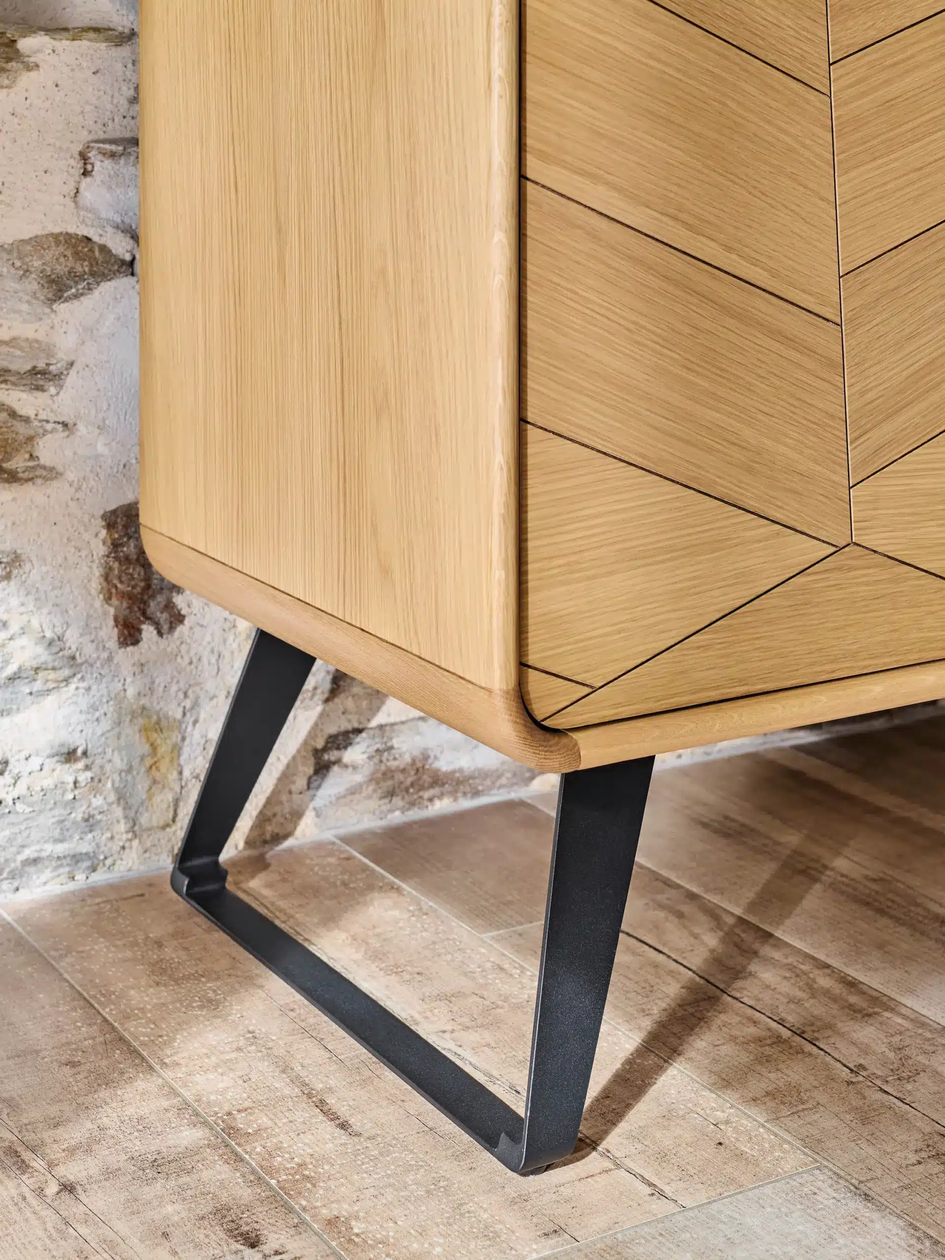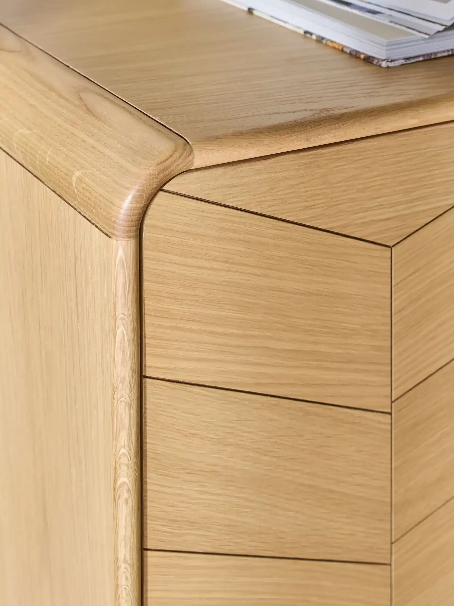 Arrondis dans les angles : chêne massif.