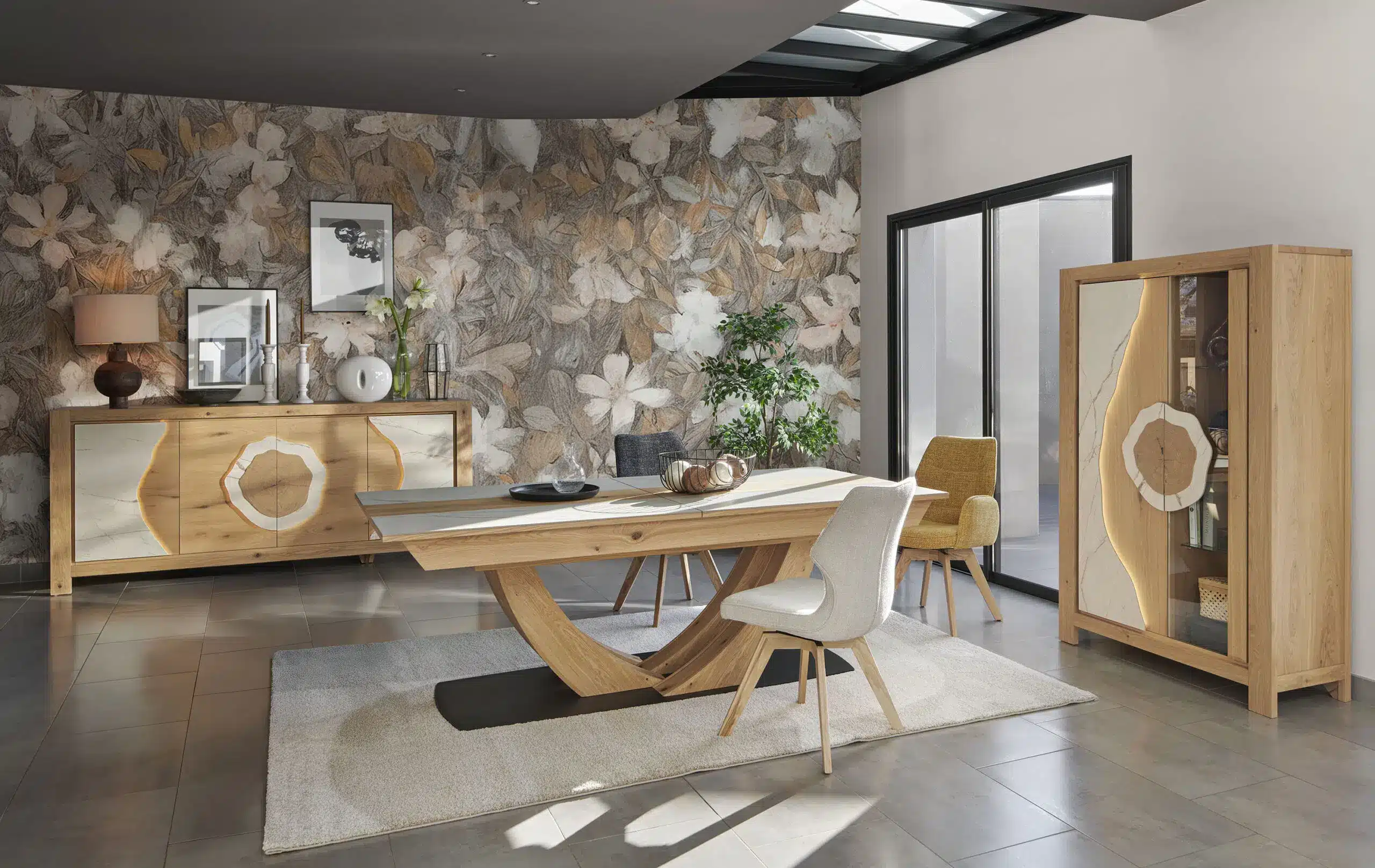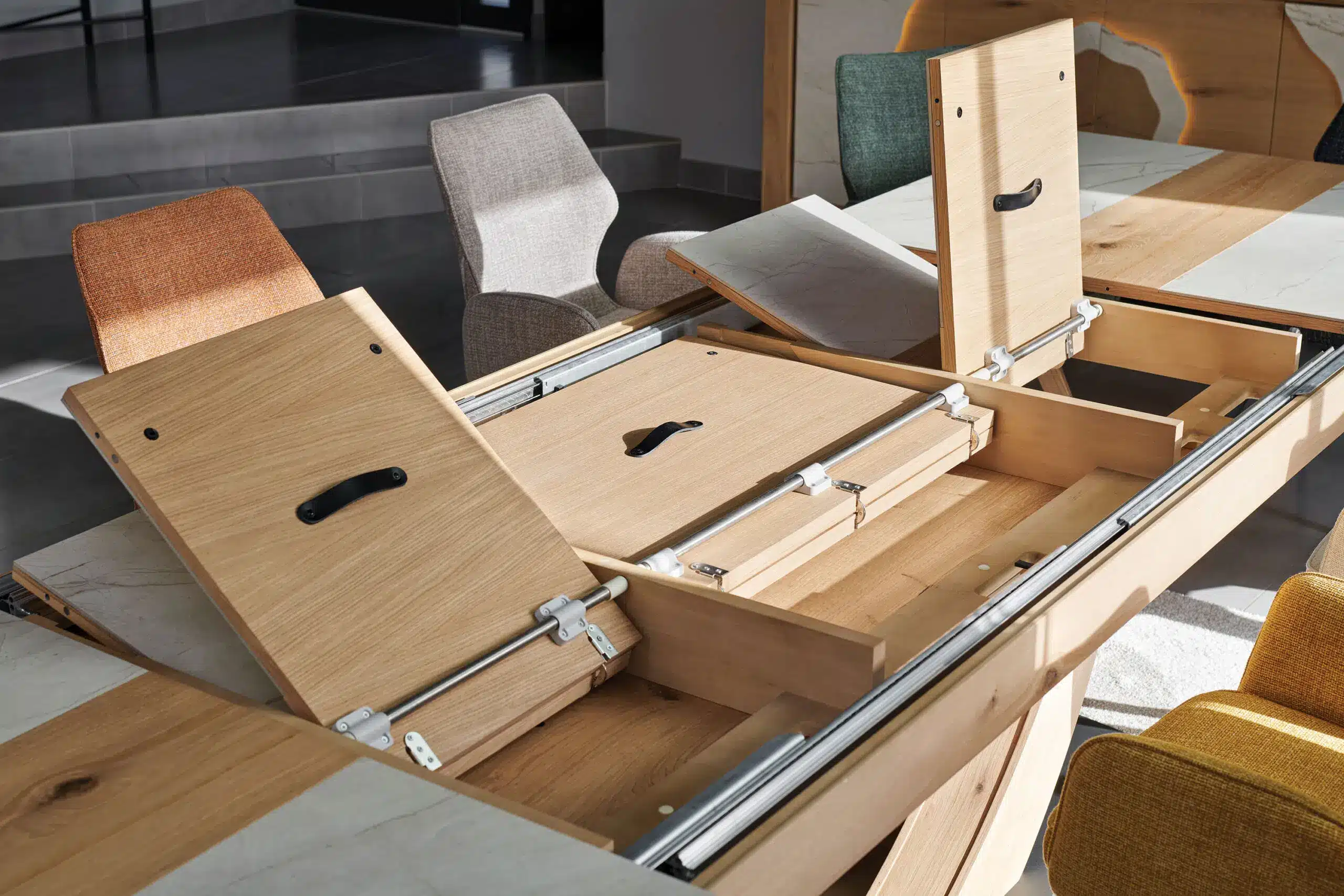 Plateaux et allonges céramique (au choix) : beige veiné ou (DEKTON) brun panaché